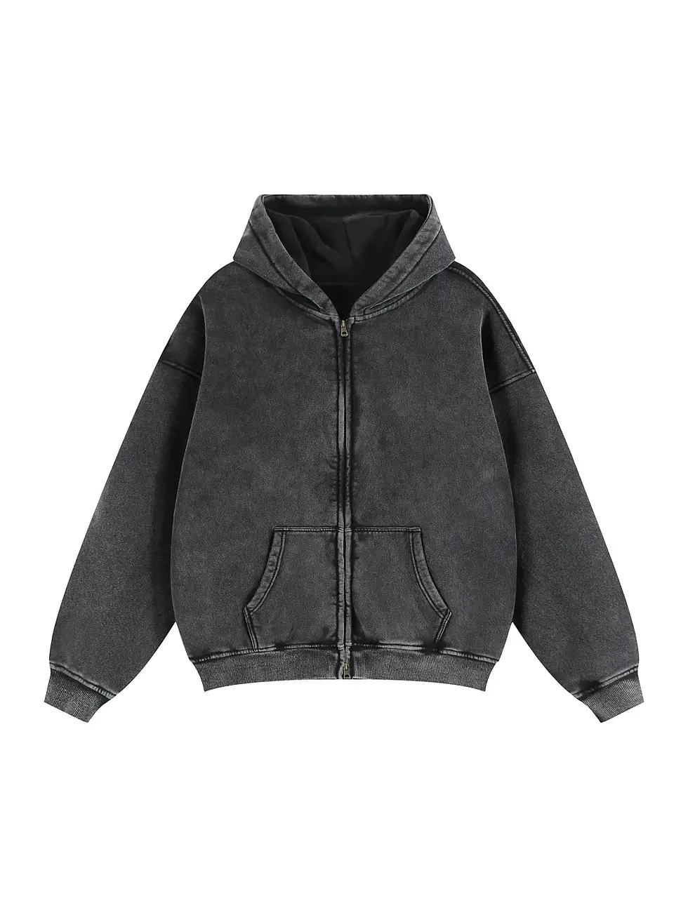Zip-Through Boxy Fleece Hoodie custom hoodie manufacturer